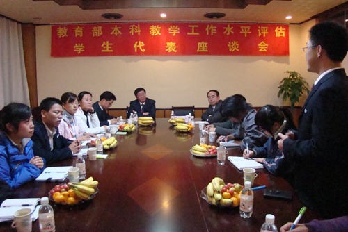 在轻松愉快的氛围中,姜茂发教授详细询问和听取了同学们对学校各方面发展的切身感受及对自身成长成才的认识,包括学校学风建设、专业特色、教师的敬业精神、人文关怀、勤工助学、就业指导、校园文化生活、心理健康教育、校园图书及网络资源共享以及评估为学校带来的好处等诸多方面。姜教授表示,同学们对学校充满热爱,对老师情意真挚,精神状态朝气蓬勃。最后,姜教授引用名人励志名言表达了对青年学子的期盼和厚望。