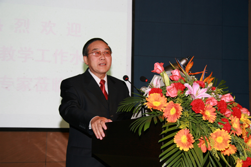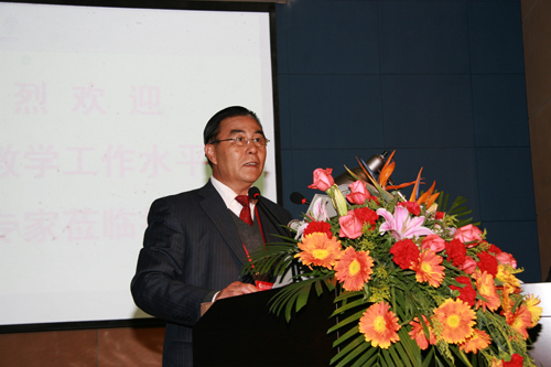 校党委书记耿喜华致欢迎词,青岛市副市长王修林、山东省教育厅副厅长宋承祥、教育部高等教育教学评估中心主任刘凤泰、专家组组长李进才教授先后讲话。