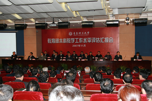 青岛市副市长王修林、山东省教育厅副厅长宋承祥、教育部高等教育教学评估中心主任刘凤泰、专家组组长李进才教授先后讲话。校党委书记耿喜华致欢迎词,校长仪垂杰汇报本科教学工作。