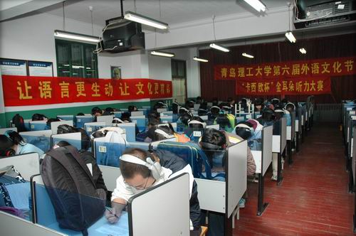 本次比赛的试题编排由外语学院王锡艳老师负责,听力录音则有郭印老师亲自担当。选题的挑战性及趣味性,发音的准确性及专业性都为本次比赛的成功举行提供了有力保证。本次大赛共有200多名同学踊跃报名参赛,三个语音教室座无虚席,大赛完全改变了以往听力考试的模式,把原有的枯燥无味的试题转变成了同学们喜闻乐见的知识,涵盖了名言警句、英文歌曲、电影对白等多个方面,极大地增强了同学们英语学习的趣味性,提高同学们的英语听力技能,同时也活跃了校园英语文化活动氛围,创造了良好的语言学习外部环境。