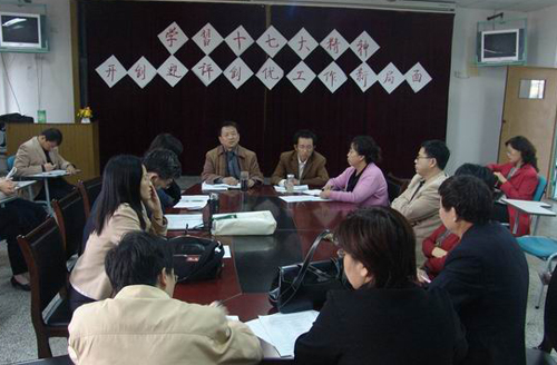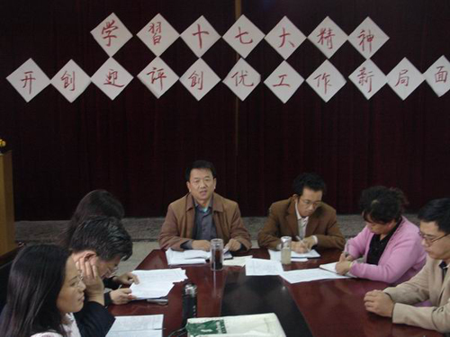 10月17日,人文社科学院隆重举行“学习十七大精神、开创迎评创优工作新局面”动员大会。学院院长谭业庭、党总支副书记林桂梅、副院长陈国庆以及全体教师参加了会议。 谭院长要求全体教职工要以实际行动为开创学院“迎评创优工作新局面”做出新的更大的贡献。陈国庆副院长提出了学院迎评创优工作的具体整改计划和安排。随后,全体老师就今后如何更好的为迎评创优增光添彩进行了热烈的讨论。 按照学校党委的具体安排,党总支副书记林桂梅根据校党委书记耿喜华教授对学习党的十七大精神提出的三点要求的精神,组织全体教工学习胡锦涛总书记在党的十七大所作的题为“高举中国特色社会主义伟大旗帜,以邓小平理论和"三个代表"重要思想为指导,深入贯彻落实科学发展观,继续解放思想,坚持改革开放,推动科学发展,促进社会和谐,为夺取全面建设小康社会新胜利而奋斗”报告。同时,为了进一步接受专家的全方位的考查,林副书记又带领大家学习了“本科教学工作水平评估手册”等内容,使大家进一步明确学校的办学思想、办学理念、办学定位、办学特色、教师的风范、专家听课的评价指标等迎评知识。 学院把学习十七大精神和学院迎评工作联系在一起,有利于更好的践行十七大的会议精神,以本科教学工作水平评估为契机,在今后短短的一个月里,抓紧时间,分秒必争,本着为学校、学院和个人负责的态度,群策群力;团结一致、齐心合力;任务到人、责任到人、层层把关及时解决预评估中存在的问题,确保学校本科教学评估取得优秀成绩,为学校、学院争光添彩做出自己的贡献。(人文学院从晓 费厚尚)