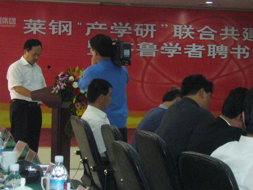 莱钢集团公司董事长姜开文在颁发莱钢齐鲁学者聘书时说,研究与开发是一个企业增强核心能力、实现可持续发展的动力。科研院所、大学与企业之间联合研发,是推进莱钢技术发展、提升价值创造能力的必然选择。希望“产学研”联合共建研发机构的建立,能够使莱钢站在中国钢铁冶金技术平台上,积极跟踪和参与世界冶金前沿技术的研究与开发,使莱钢与中国冶金同步,与世界同步。同时,加强研发队伍建设,培育一批高端研发人才,促进自主研发能力的快速提升。