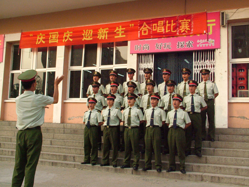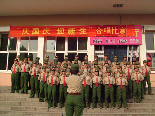 本次活动共有18个班级的参赛队在辅导员和教官的带领下参加了比赛,东校区餐厅门前队列整齐,歌声嘹亮,同学们以饱满的热情歌唱祖国,庆祝祖国母亲58周年华诞。《团结就是力量》、《歌唱祖国》、《精忠报国》等歌曲催人奋进,鼓舞人心,而军训教官们的合唱更是高亢激昂,赢得全场观众的热烈掌声。
