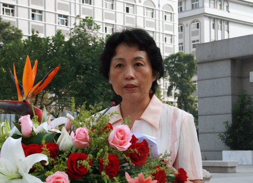 教师代表、土木工程学院副院长、博士生导师王燕教授在发言时表示,胡锦涛主席从敬业、勤业、创业、乐业等方面诠释了人民教师的师道精髓,指明了为师从教的正确方向。她说,我们一定不辜负党中央和总书记的殷切期望,把培养优秀人才当成终身追求,以更加饱满的热情献身高等教育事业,努力成为一名兼具人格魅力和学识魅力的人类灵魂工程师。王教授向新生提出几点希望:希望同学们以饱满的学习热情把握好大学的初期学习阶段;树立信心,保持良好心态,具有战胜任何困难的勇气;抵制各种诱惑,防止小错改变一生。