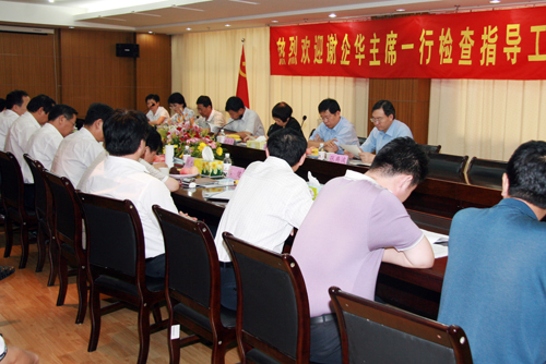 上午,谢主席一行与校党政领导、相关部门负责人进行了座谈,校党委书记耿喜华主持座谈会,对谢企华主席一行的到来表示热烈的欢迎,对谢主席关心和支持学校发展表示诚挚的感谢。