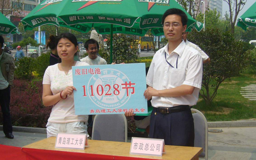 6月5日是第36个世界环境日,为向广大市民宣传环保知识,提高人们对废旧电池危害的认识,推动全社会的环境保护意识,促进电池回收工作的开展,校学生会与开发区环保局,开发区市政公司,青岛新天地固体废弃物处置公司在开发区长江利群商厦前共同举办了万节废旧电池交付仪式,并将所回收的11028节废旧电池送到青岛市新天地固体废弃物处置公司,开发区电视台对此次活动予以专题报道,并现场采访了部分学生代表。