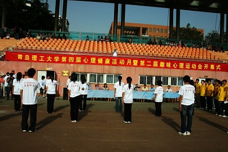 启动仪式后,与会领导在现场观看了心理运动会比赛,各参赛代表队以饱满的热情为在场的师生献上了一场别开生面的竞技项目,搭桥过河、互助障碍行、小火车赛、天女散花等不时引起在场师生阵阵欢快的掌声和喝彩声。另外,青岛日报、青岛晚报、青岛开发区电视台也对整个活动进行了采访报道。