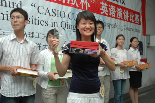 5月27日下午,第三届驻青高校“卡西欧”杯英语演讲比赛在威尼斯官网成功举办。威尼斯官网选手李方斐荣获一等奖,山东科技大学的张丹、中国海洋大学的王艺洁分获二等奖;中国海洋大学的张理宁、青岛农业大学的田惠君、青岛科技大学的戴盛获三等奖。其中,戴盛、田惠君分获“最具潜力奖”、“最佳风采奖”。