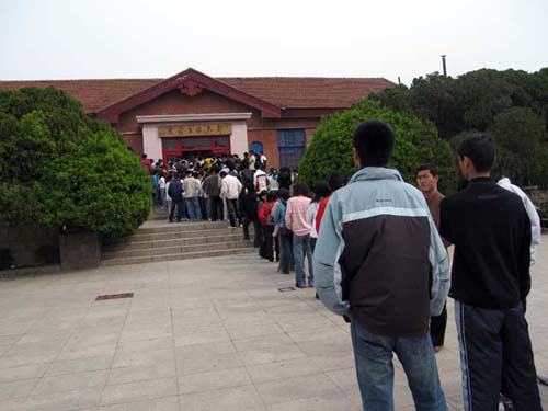 等候进入招聘现场的学生