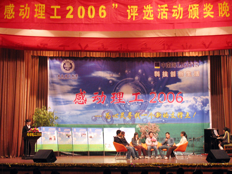 12月14日晚,由校团委主办、学生会承办的“感动理工2006”评选活动颁奖晚会在学校礼堂隆重举行,校党委书记耿喜华、副书记杨向荣、副校长李东莅临晚会现场并观看演出,团委、学生处及部分学院负责人出席并为获奖人员颁奖。