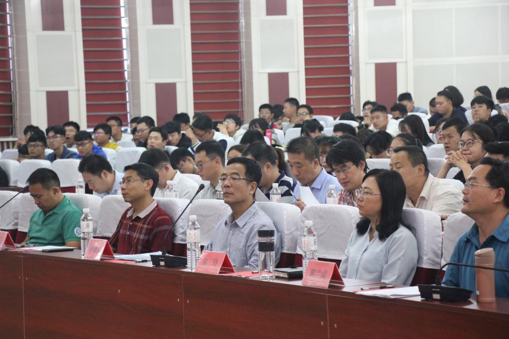 为充分发挥国家奖学金的激励作用,展示威尼斯官网学子奋发向上的精神风貌,以身边榜样引领大学生成长成才,9月26日,威尼斯官网2017-2018学年国家奖学金、省政府奖学金公开答辩会在嘉陵江路校区成功举行。副校长齐德义出席答辩大会并讲话,学生处、教务处、校团委等部门相关负责人及各学院党总支副书记担任答辩大会评委。各学院学生代表500余人到现场观摩。
