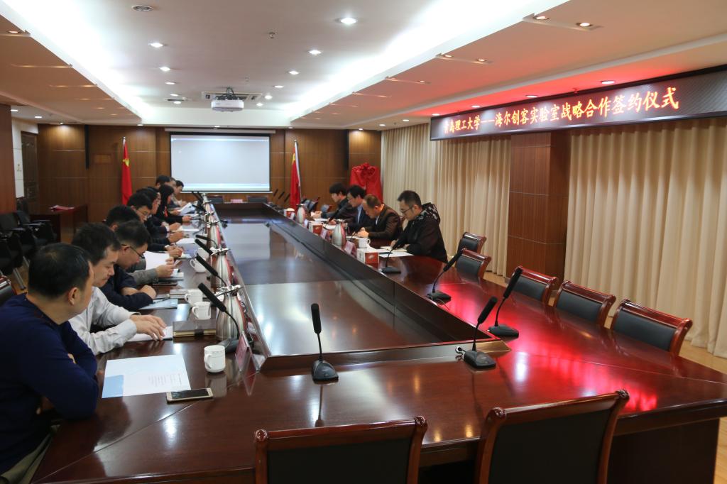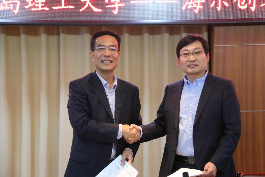 副校长齐德义、海尔用户交互资源平台小微主陈国良签订战略合作协议