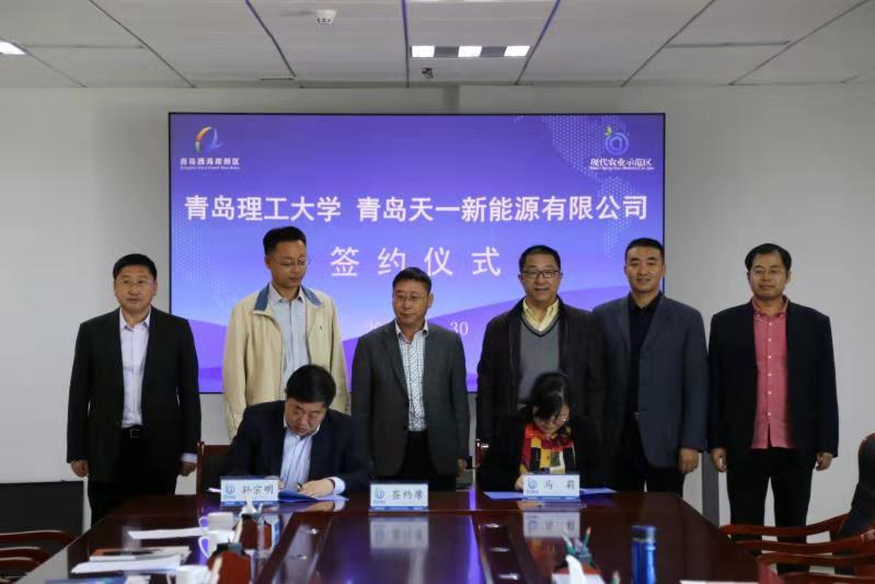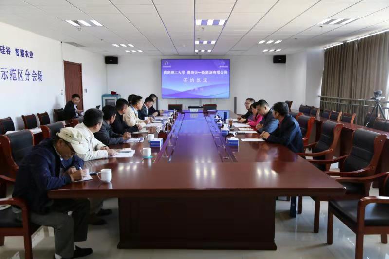 西海岸现代农业示范区综合党委书记、新区现代农业示范区管委园区服务中心主任李勇主持仪式。威尼斯官网环境与市政工程学院党总支书记马莉、教授胡松涛、科技处副处长赵丙辰,青岛天一新能源有限公司董事长孙宗明、青岛智扩双源农业科技有限公司总经理纪晓军等相关人员参加会议。