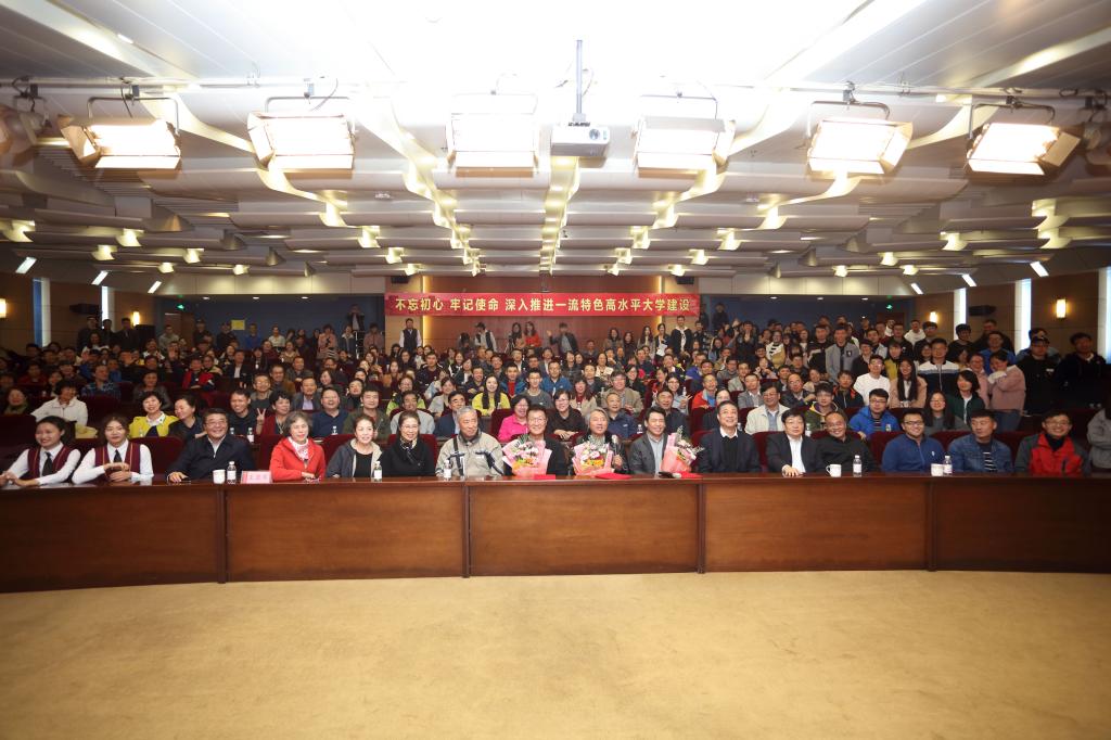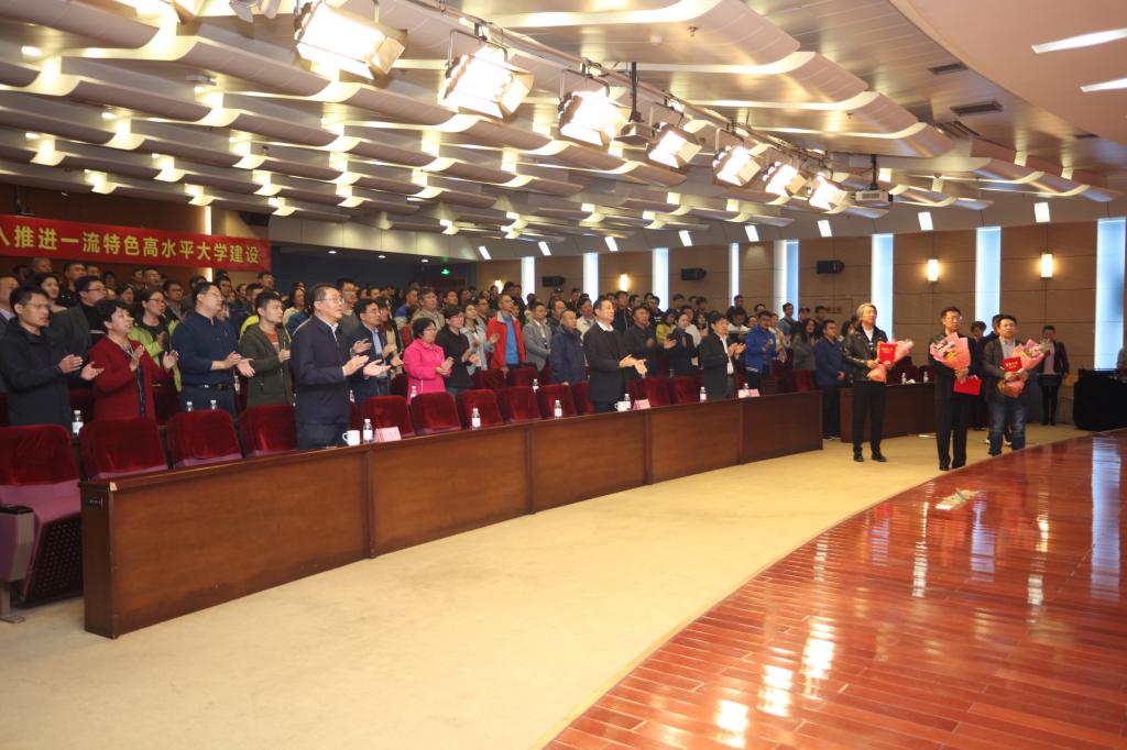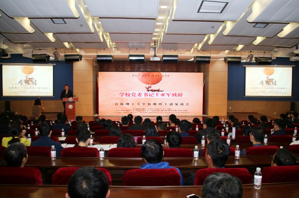 校党委书记王亚军在见面会上致辞。党委副书记张殿恒为赵琦、曲士飞、林永健三位主创人员颁发特聘艺术指导老师荣誉证书。纪委书记尹东峰及学校师生代表三百余人参加见面会。
