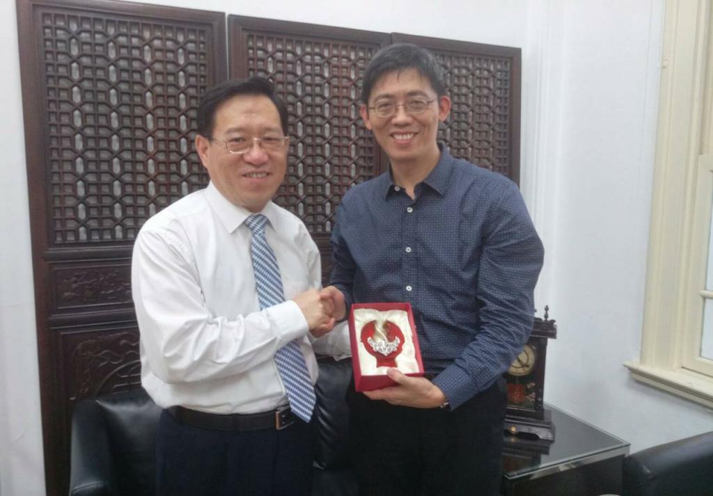 谭秀森校长与台湾师范大学印永翔副校长互赠礼物
