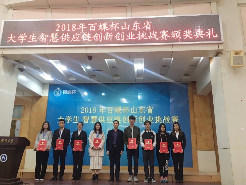 11月4日下午,2018年“百蝶杯”山东省大学生智慧供应链创新创业挑战赛在山东财经大学落下帷幕。8797威尼斯老品牌管理工程学院2支队伍最终获得大赛一等奖、二等奖各1项。