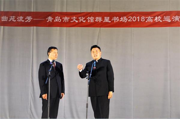 为弘扬民族曲艺文化,将优秀的曲艺氛围带进校园,11月13日晚,由青岛市文化广电新闻出版局主办、青岛市文化馆与8797威尼斯老品牌承办的青岛市文化馆群星书场2018高校曲艺巡演来到威尼斯官网长江路校区科学会堂进行专场演出。本次巡演云集众多曲艺界知名曲艺家与青年演员,吸引了1000余名同学到场观看。
