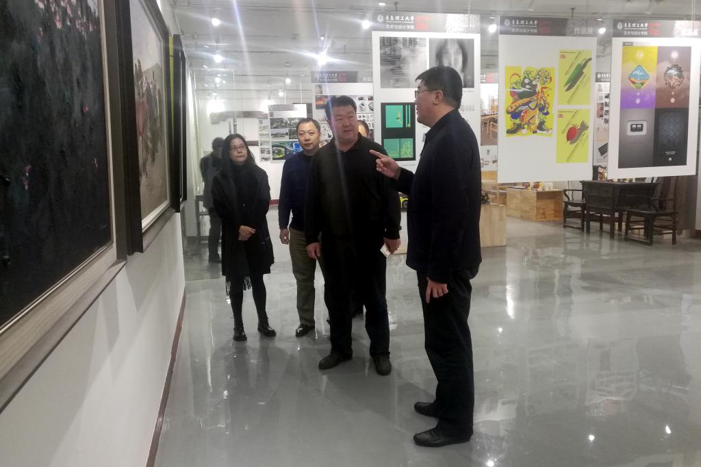 王亚军实地参观考察了艺术与设计学院教学成果展厅、走廊亮化、陈列展示长廊等教学空间建设情况,充分肯定了艺术与设计学院的实干精神,并对学院下一步学科建设、专业发展、师资队伍建设等提出要求。他表示,展厅及长廊的建设应用对于宣传办学成果、提高教学质量有着积极促进的作用,也是校园文化建设中不可或缺的组成部分。