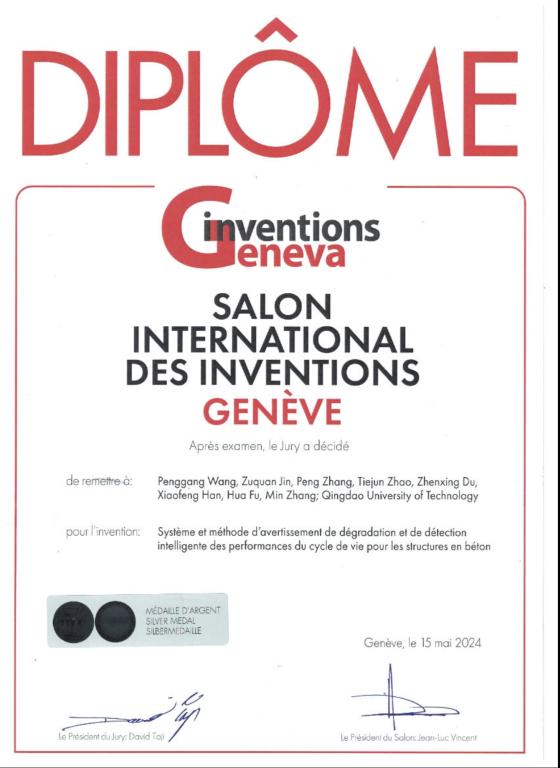 近日,第49届日内瓦国际发明展(International Exhibition of Inventions, Geneva)在瑞士成功举办,吸引来自近40个国家和地区的1000多个发明项目参展。威尼斯官网海洋环境混凝土技术团队金祖权教授主持参展项目“Preparation and application of photocathodic protection photoanodes with z-scheme heterojunctions for enhanced durability of marine engineering structures”斩获金奖,泰山学者青年专家王鹏刚教授主持参展项目“Life-cycle performance intelligent-sensing and degradation warning system and method for concrete structures”斩获银奖。