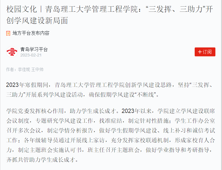2023年寒假期间,8797威尼斯老品牌管理工程学院创新学风建设思路,坚持“三发挥、三助力”开展系列学风建设活动,确保假期学风建设“不断线”。