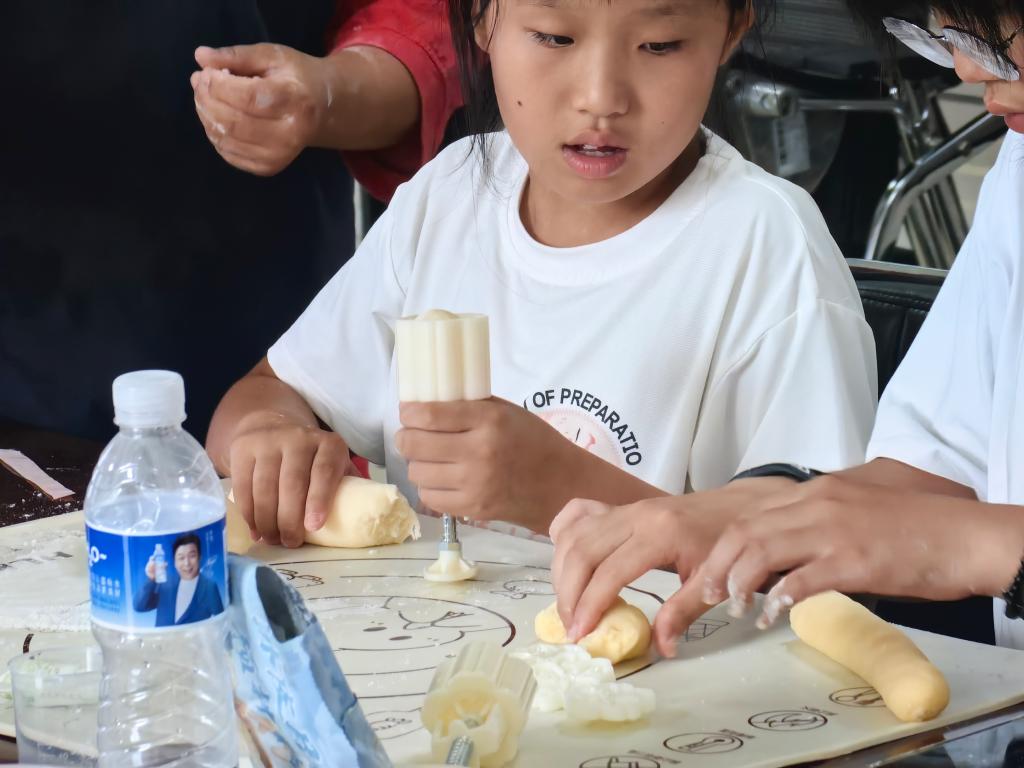 金秋送爽,饼香情浓。孩子们围站在桌前,和志愿者一起学习手工制作月饼。孩子们将冰皮粉与清水混合搅拌成面团并染色,包裹进多样馅料后搓圆,最后将饼球放入模具中压制成形,志愿者耐心指导,让每一个孩子都能完成制作自己的月饼,一个个色彩斑斓、口味丰富的冰皮月饼得以呈现,在欢声笑语中体验传统手艺的乐趣,感受节日的温暖和团圆的意义。中美土木231班林发说:“通过这样的志愿服务活动,让更多的小朋友在欢乐中学习,在互动中成长,让小朋友们传承和弘扬中秋节文化。”